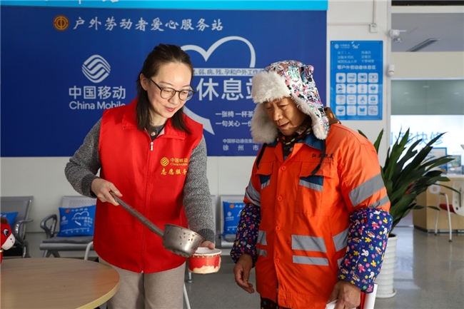 腊八节的寒风凛冽,却吹不散中国移动江苏公司徐州分公司(以下简称“徐州移动”)工会驿站传递的温暖。在这个传统节日里,一场充满爱心与关怀的活动正在火热进行,而一位环卫工人的暖心经历,更是让这份温暖熠熠生辉。